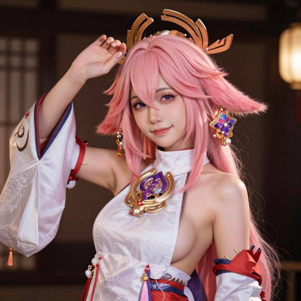 Photorealistic Yae Miko Fox Shrine Maiden