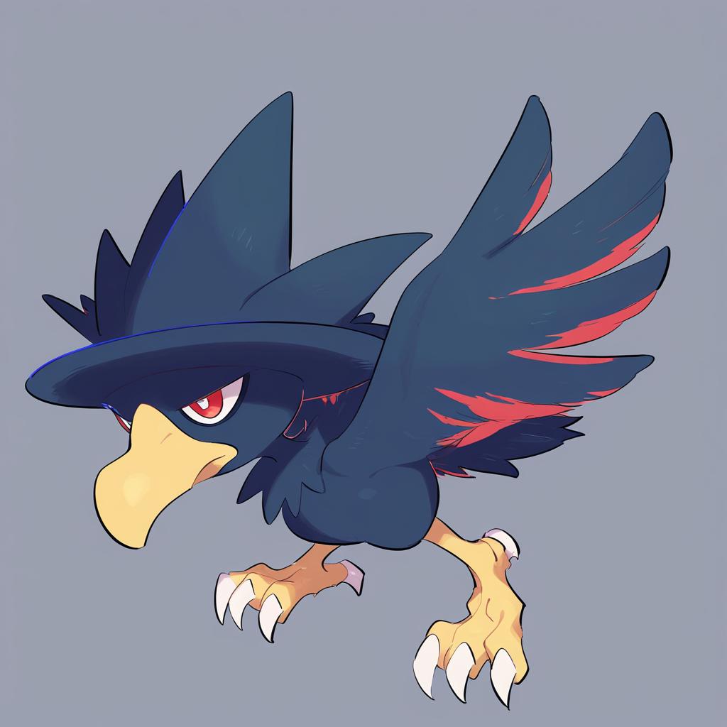 Murkrow, pokemon, no humans, red eyes, white pupils, pokemon (creature), bird, claws, by artist cait aron, leet