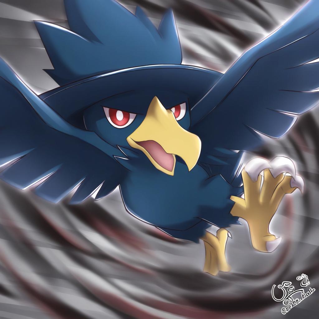 Illustration of Murkrow, pokemon in the style of Cait aron