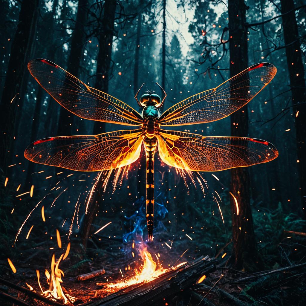 Fire painting of a flaming geyser against a twilight desert, featuring intense heat effects and swirling sparks in a magical atmosphere.