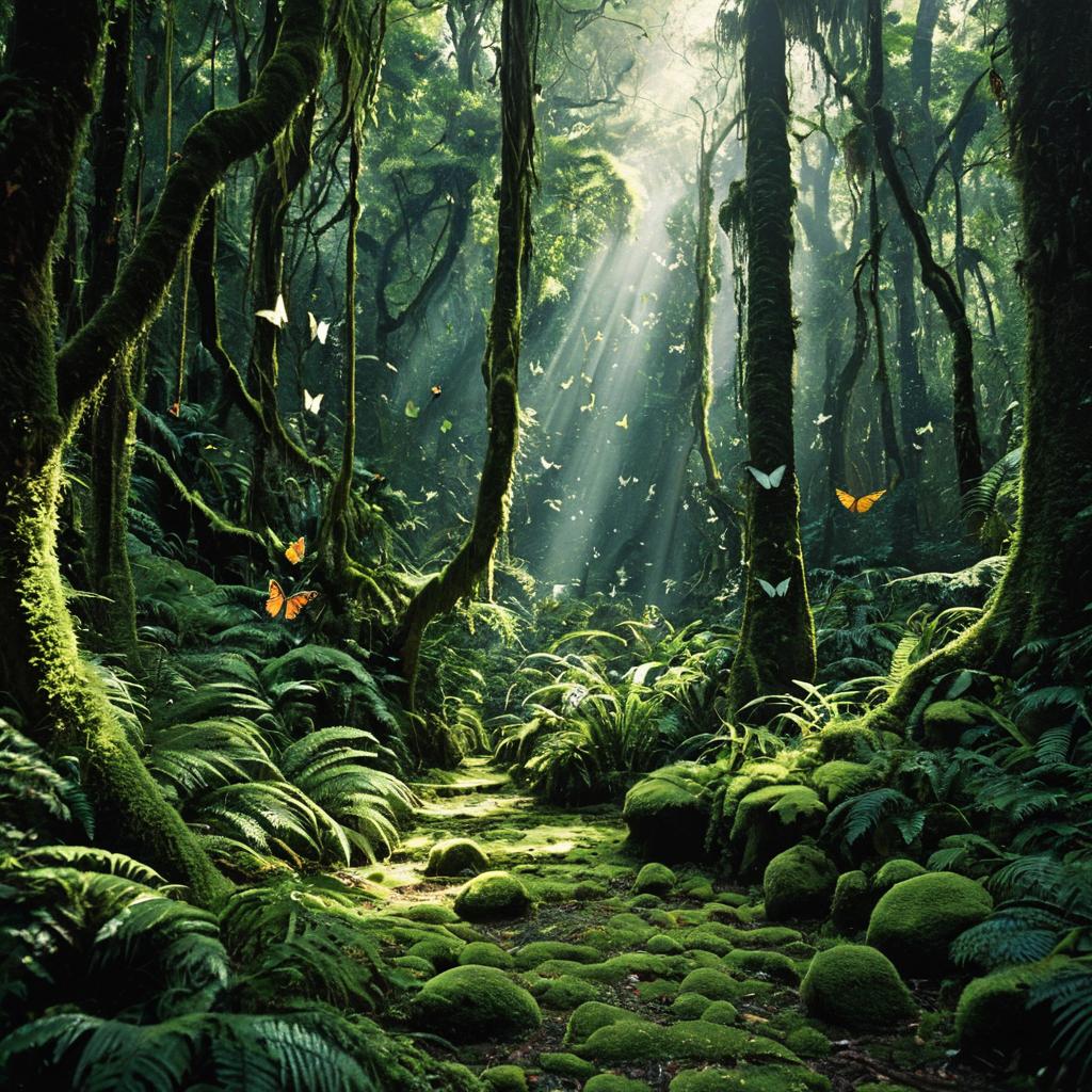 Sunlit Dense Jungle with Butterflies