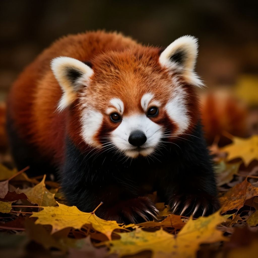 Super cute black fluffy red panda, little panda, lovely, lie on leafs, vivid colors, colorfull, autumn, source_realsitic, realistic, photorealisitc, masterpiece, best quality, , perfect detailed face, intricated skin, extremely detailed, dark shadows, hard light hard shadows, shallow depth of field, vignette, highly detailed, 8k, dark, rim lights, cinematic shadows, ultra sahrp, ultra clear, score_9, score_8_up, score_7_up