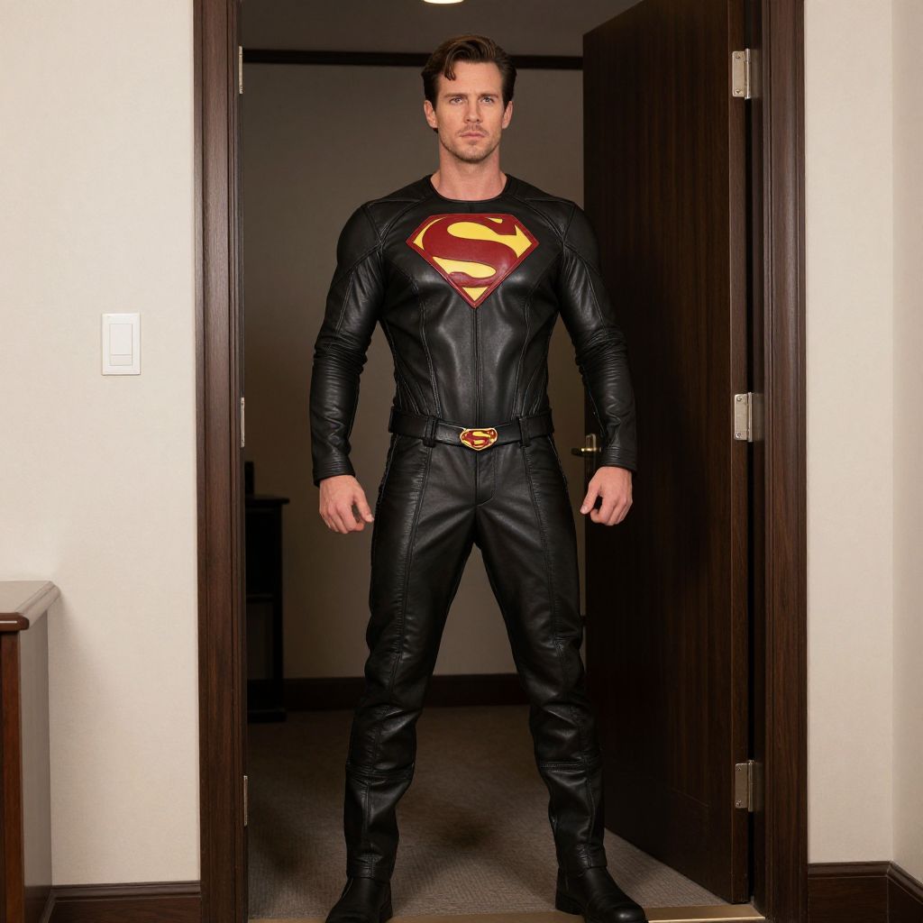 Leather Superhero Suit in Doorway