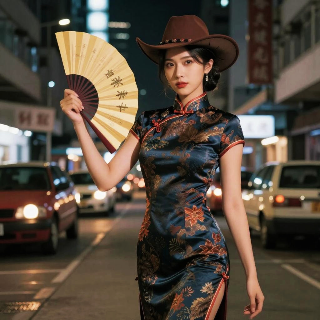 Woman in Kitsune Costume with Nine Tails at Night Shrine