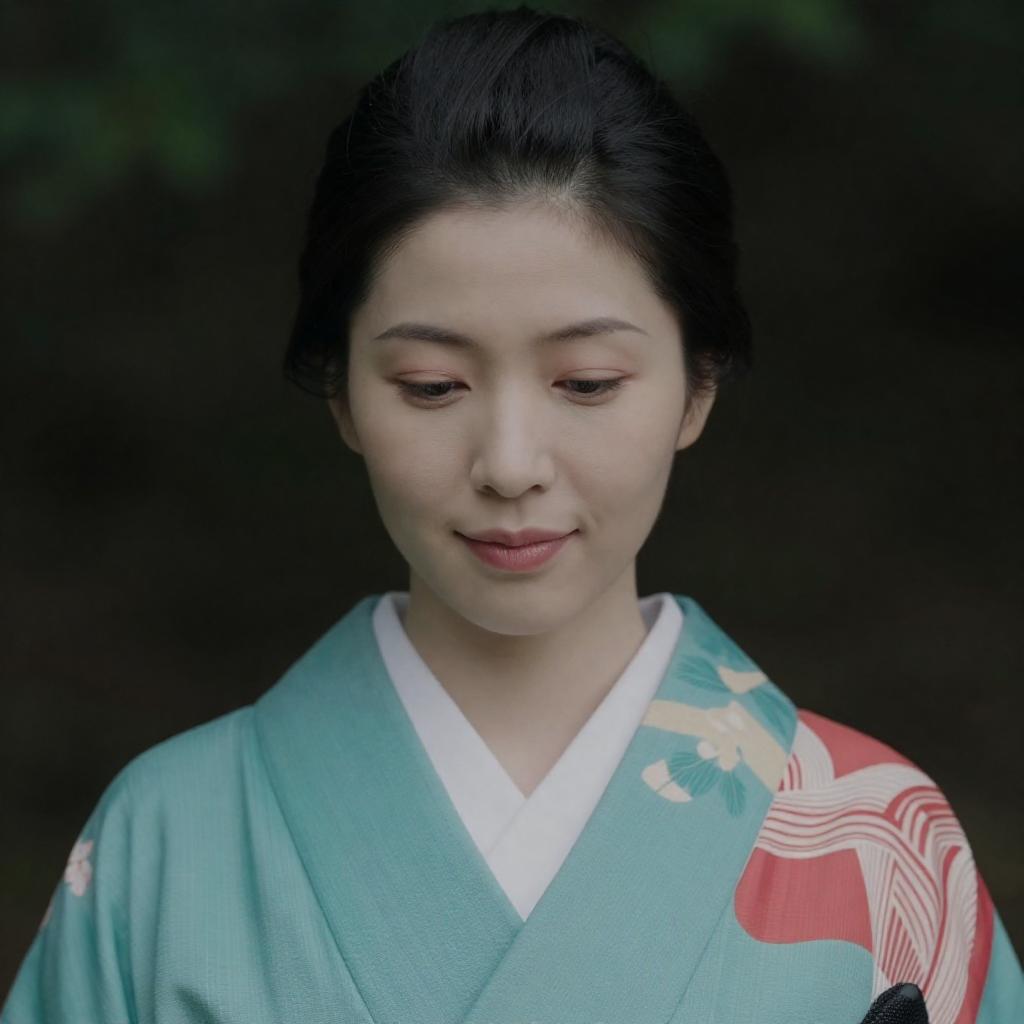 East Asian Woman in Kimono Holding Bowl