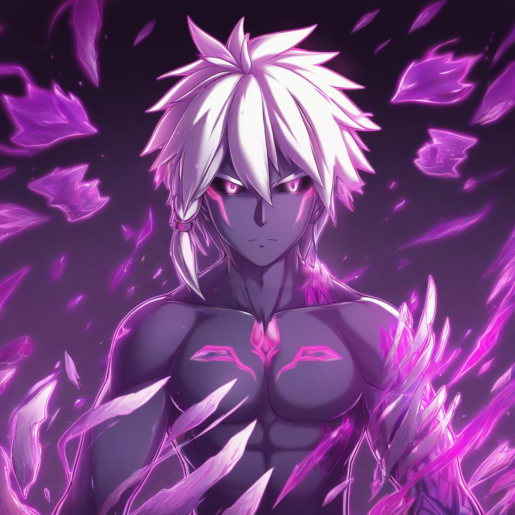 Add (elsword), elsword, 1boy, purple eyes, white hair, tattoo, facial mark, black sclera, by artist fish.boy, leet