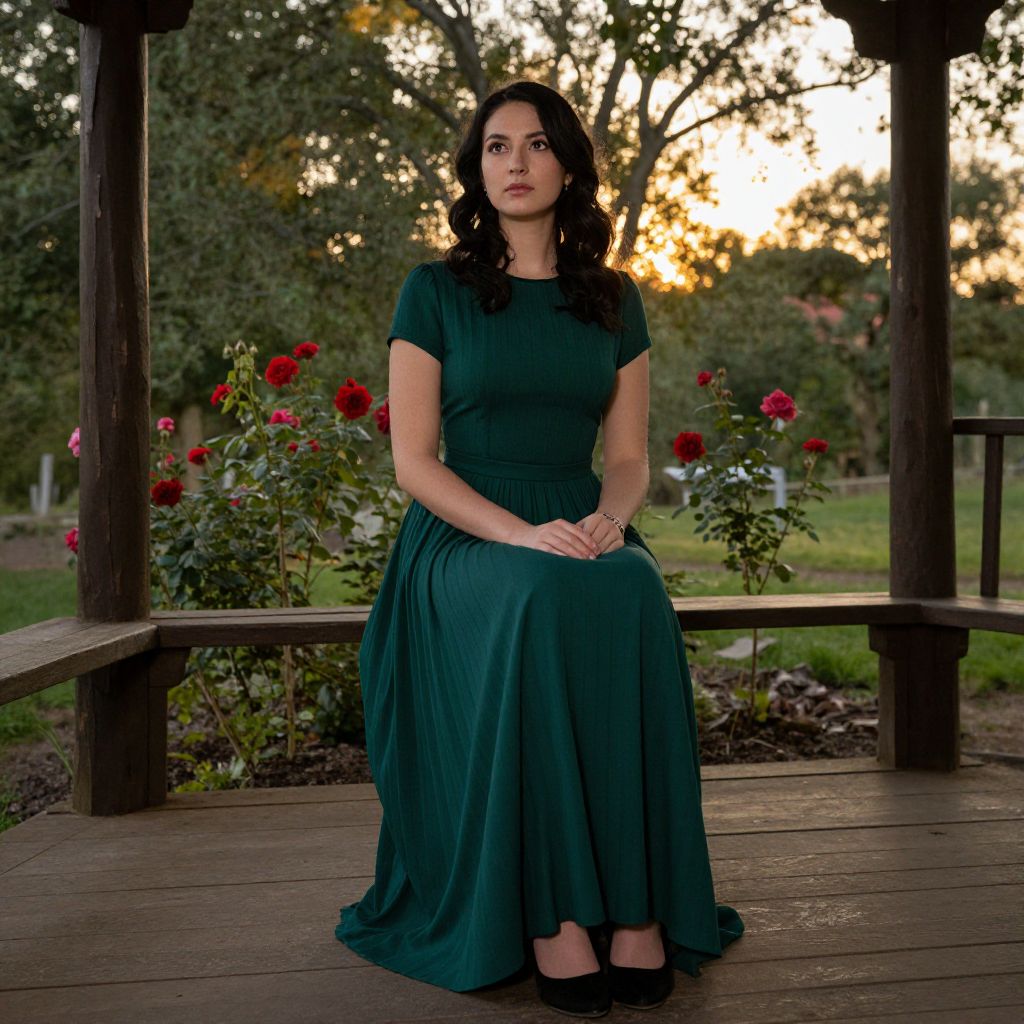 A photorealistic portrait presents a pensive South Asian woman with striking blue eyes and ash blonde hair pulled back into a sleek ponytail, viewed from a dramatic low-angle perspective emphasizing her strength and elegance. Soft, diffused light filters through the branches of an ancient oak tree, illuminating her porcelain skin and casting intricate shadows across her face. She stands amidst a lush forest backdrop, wearing an elegant white silk dress adorned with delicate lace, exuding solitude and introspection while maintaining serenity and resilience as her gaze wanders off into the horizon, inviting viewers on their own journey of self-discovery.