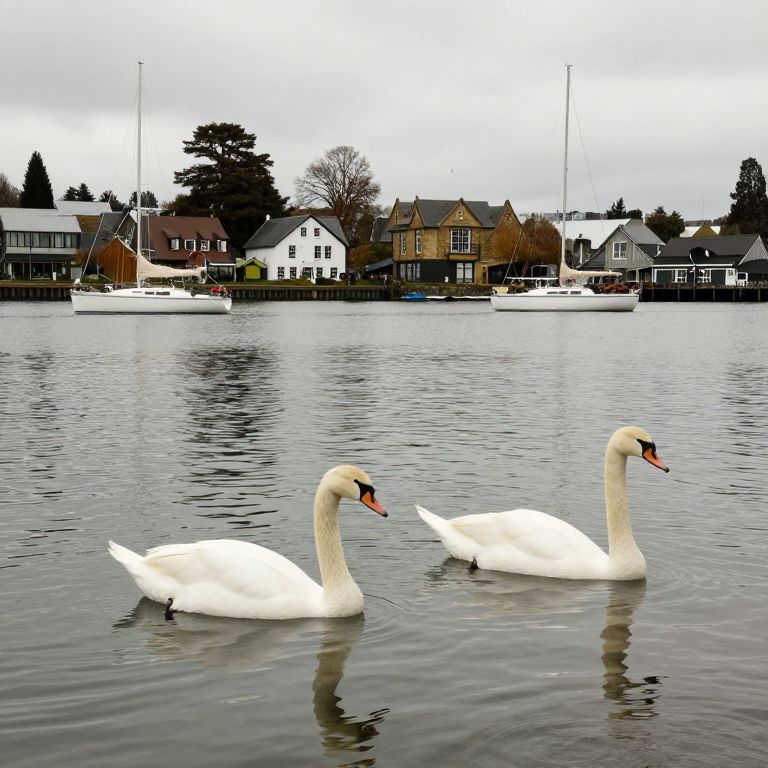 Serenity whispers through the still waters of Christchurch Harbour, where swans glide gracefully, embodying freedom and peace, while the muted tones of sailboats and historic buildings evoke a timeless connection to nature and tradition.