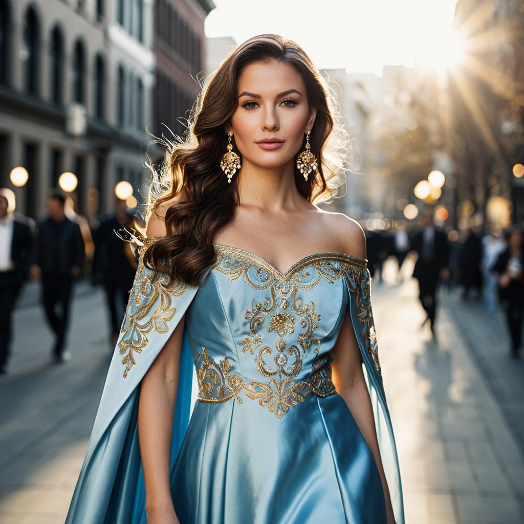 Elegant Fashion on a Cobblestone Street