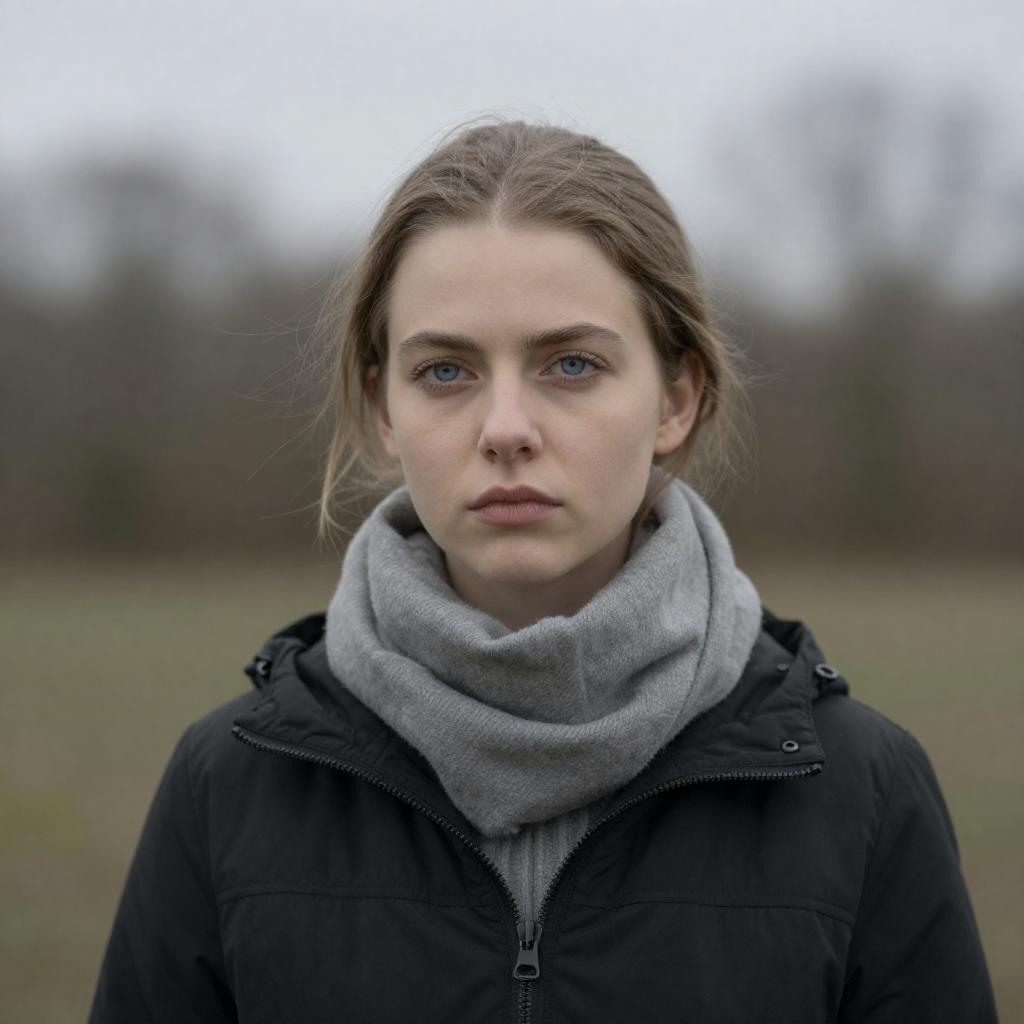 Serious Blonde Woman in Snowy Landscape