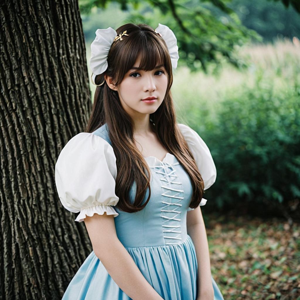 Uraraka fantasy cosplay,1girl, dress, long hair, brown hair, solo, looking at viewer, blurry, solo focus, floral print