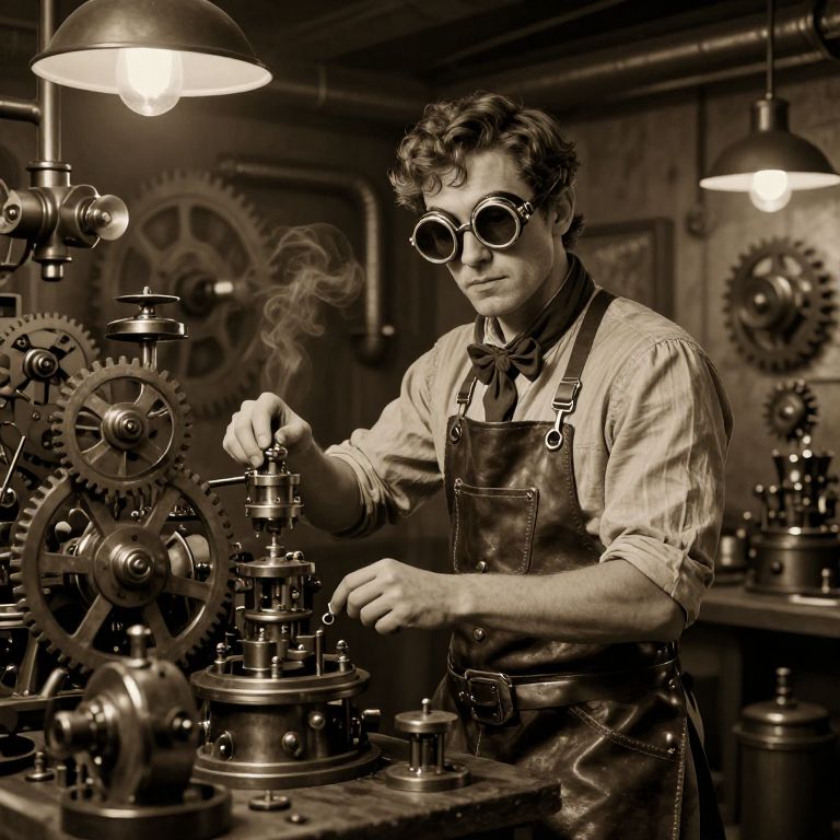 Steampunk Inventor in Vintage Workshop