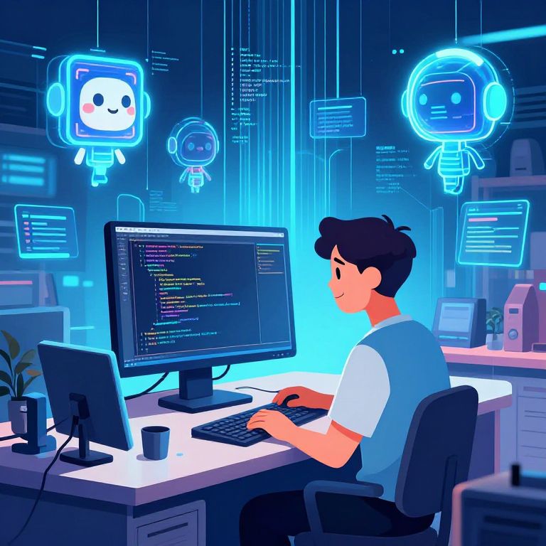 Programmer Coding with AI Avatars