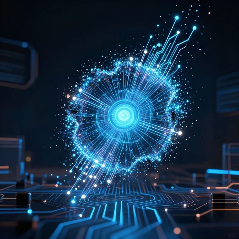 What AI can draw pictures: a conceptual scene where AI algorithms transform raw data into beautiful, complex visual compositions, illustrating the power of machine learning in art creation, surrounded by glowing lines, geometric shapes, and a dynamic digital canvas.