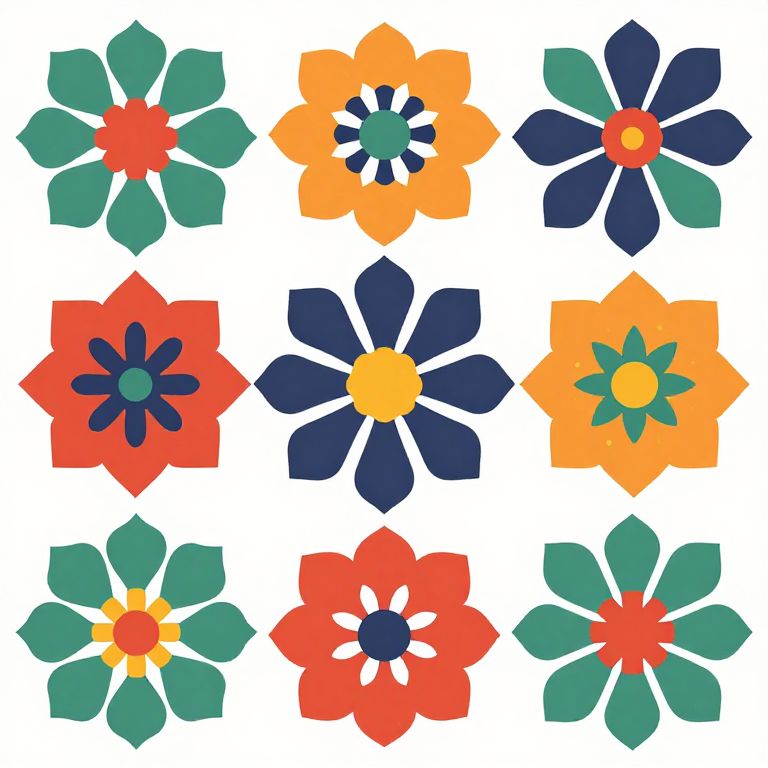 Animating Flower pattern, illustration, folk art, graphic design, illustration, stock vector illustration, stylized, digital art, flat colors, vector style, 2d,