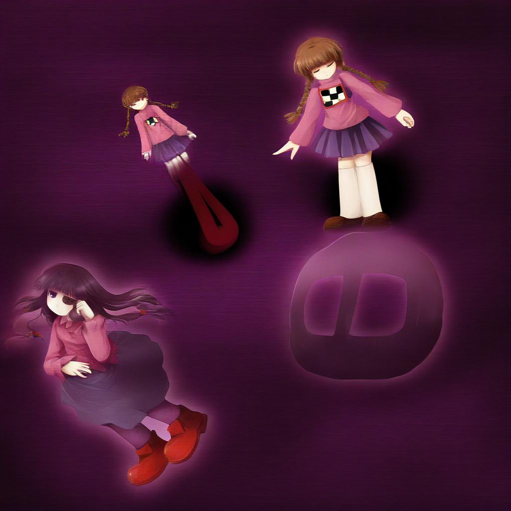Monoe, yume nikki, 1girl, long hair, black hair, brown hair, twin braids, skirt, by artist chima q, leet