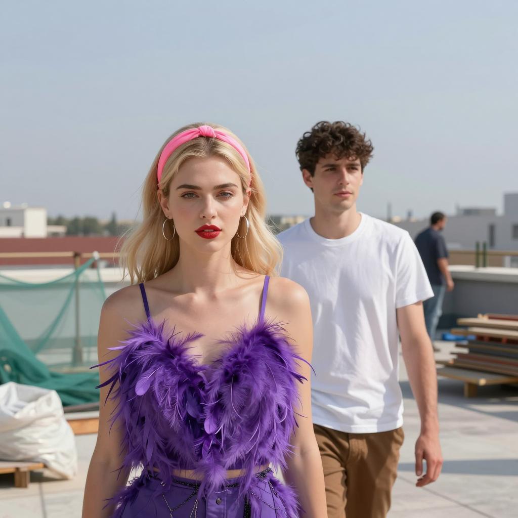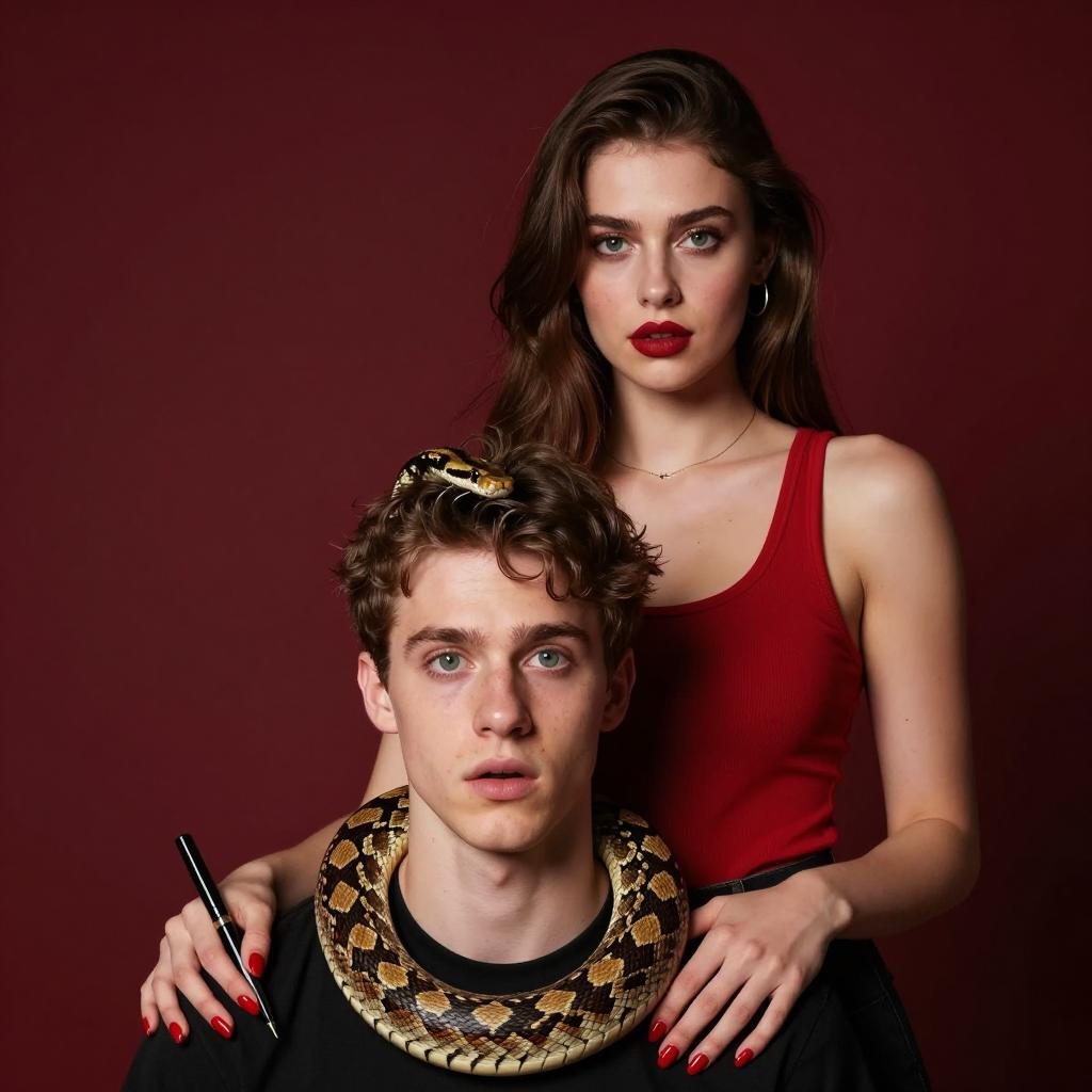 Stylish Duo Against Dark Wall
