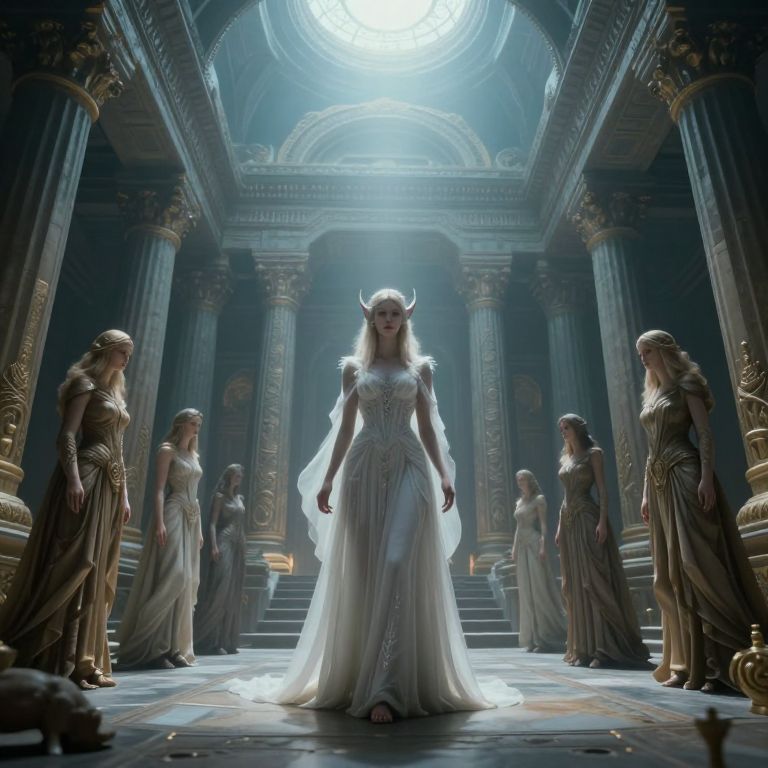Wide-Angle Point Of View beautiful goddess lilith with her followers in ancient temple, concept art, occult, dreamy, magical realism, HD, 8K,