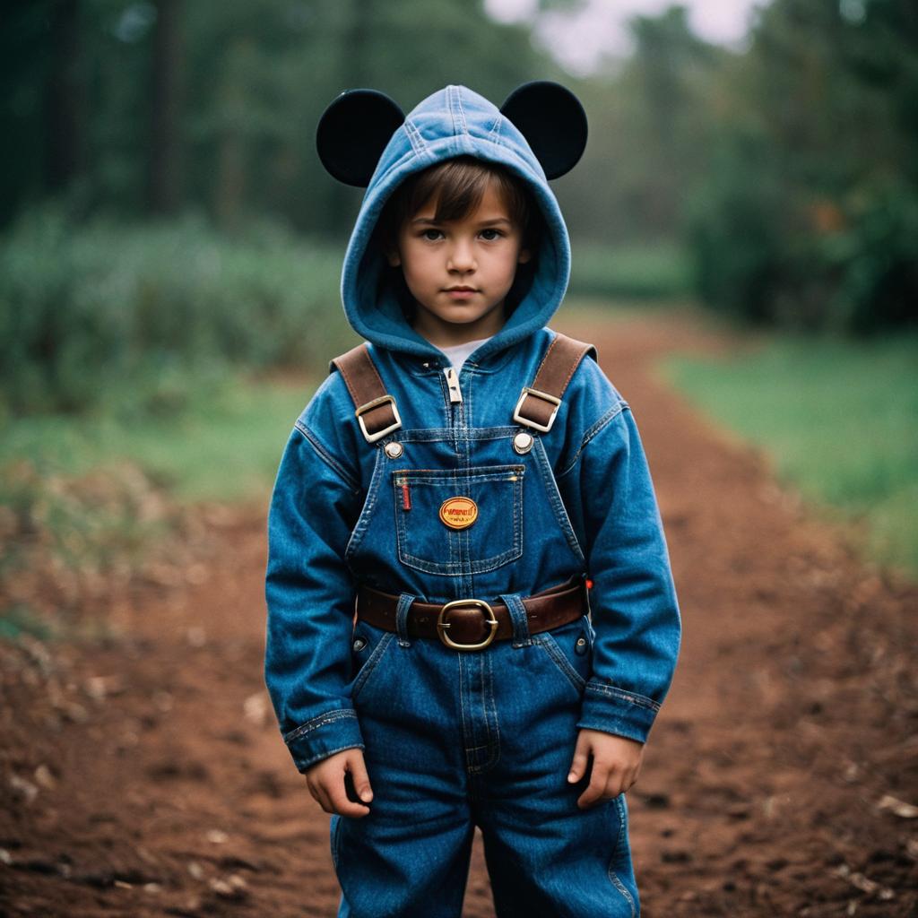 Hatching pterodactyl toddler,solo, 1boy, male focus, outdoors, nature, blurry, looking at viewer, blurry background, arms at sides, forest, standing, closed mouth, realistic