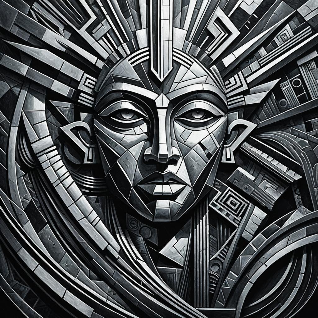 A striking digital artwork featuring a metallic cubism-inspired abstract portrait of a visionary figure. The intricate geometric shapes and linear details merge to form a stylized human face, emphasizing creativity and passion through futuristic metallic hues and complex design elements.