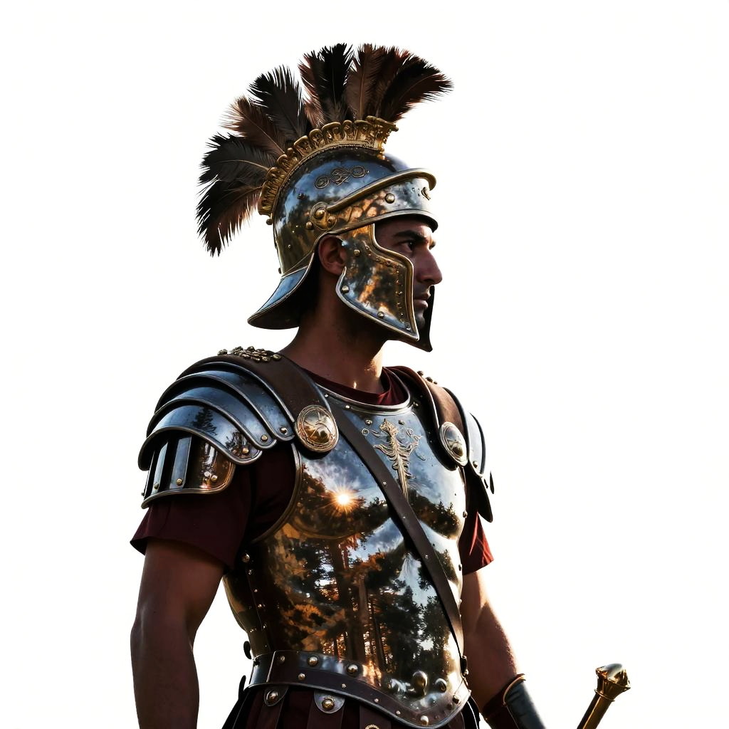 Roman Soldier Silhouette with Pine Reflection