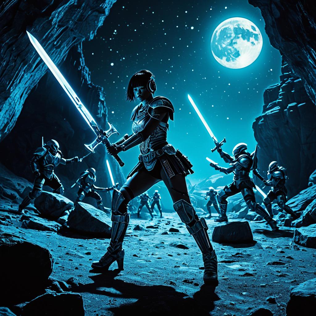 Futuristic Space Punk Gladiator with Heavy Mech Armor