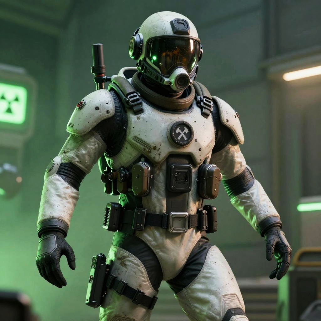 Futuristic Hazmat Soldier in Ruined City