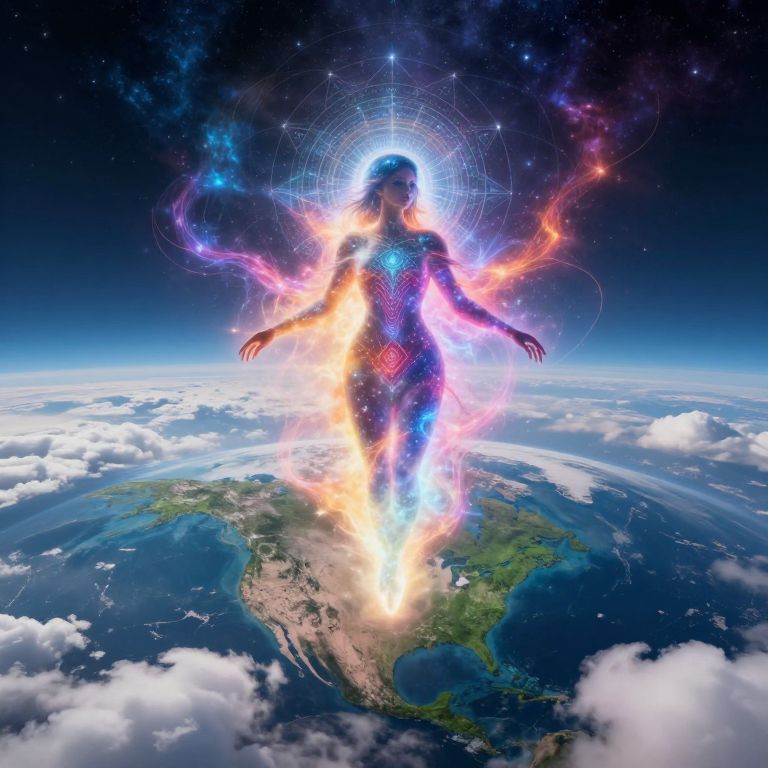 An aerial perspective, evoking the grandeur of Hokusai's famous wave, portrays an expansive digital landscape featuring towering silicon mountains, bioluminescent plant life, and binary star constellations. At its heart stands a mystical figure dressed in a luminous exosuit patterned with holographic designs, their form merging harmoniously into the undulating waves of electric blue data. This vividly colored, hyper-realistic image encapsulates both the breathtaking majesty and the mysterious charm of a world where technology intertwines seamlessly with nature, beckoning viewers to be captivated by this surreal fusion of organic and artificial elements that redefine our perception of the natural order.
