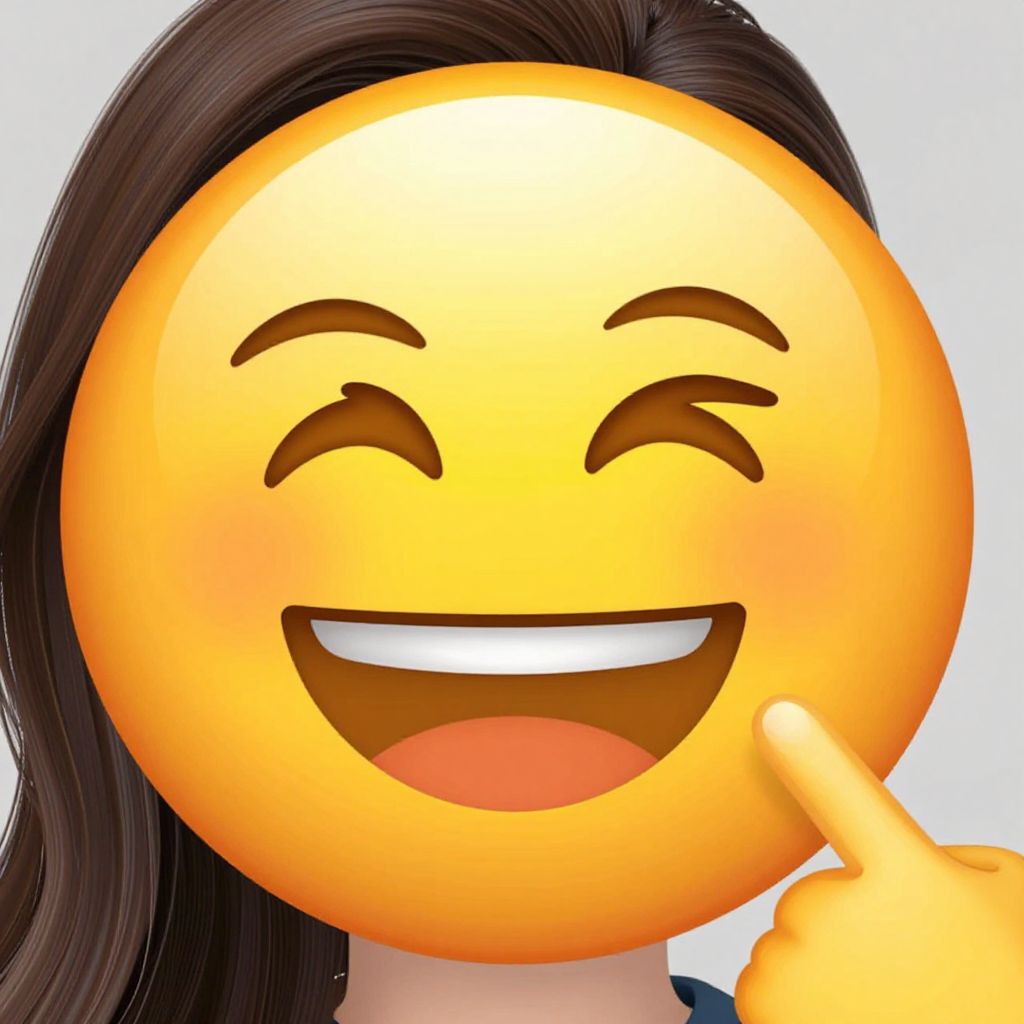 Make emoji from photo creative design, a portrait morphs into an adorable emoji with exaggerated joyful expression, bright saturated colors, detailed texture mimicking skin tones mixed with cartoonish charm, playful and friendly style, digital illustration
