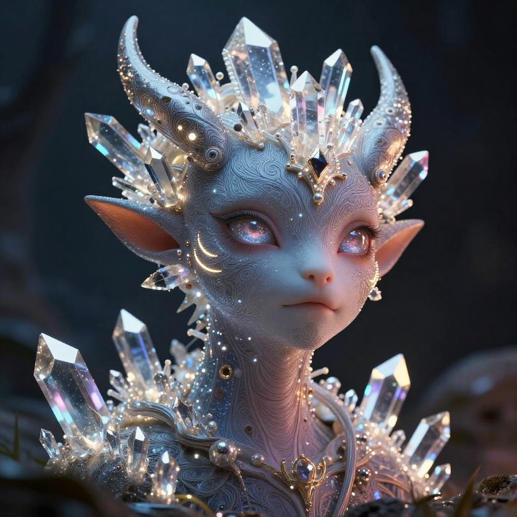 Mystical Crystal Creature Super Closeup Portrait