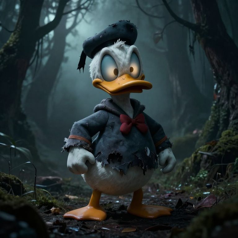 Creepy Donald Duck in Dark Forest