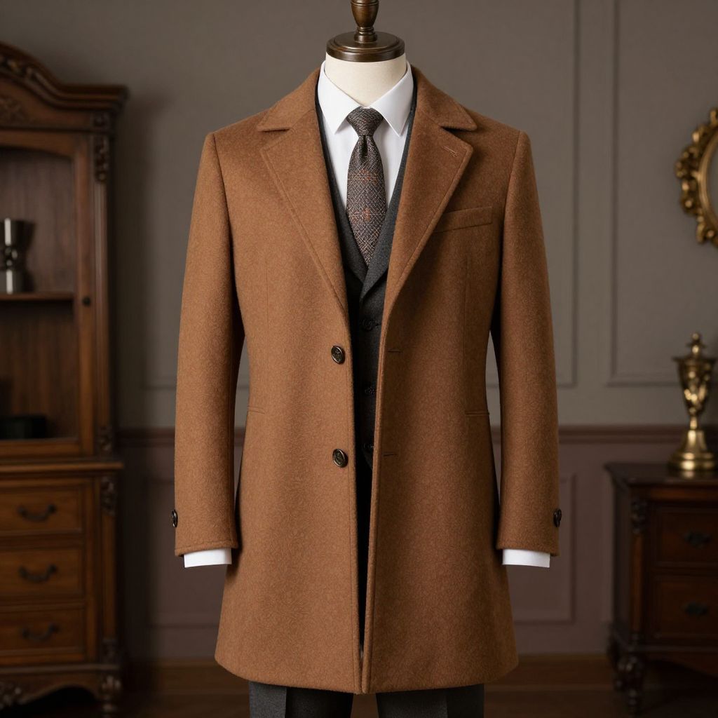 Man Overcoat Costume, man in a brown coat standing in a room