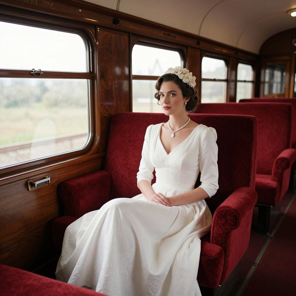 Elegant Woman in Vintage Train Car