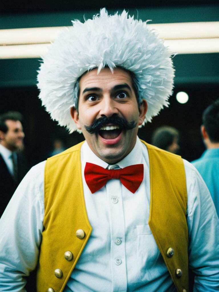 Person in Funny Show Character Costume, waist-up editorial portrait, photorealistic tones