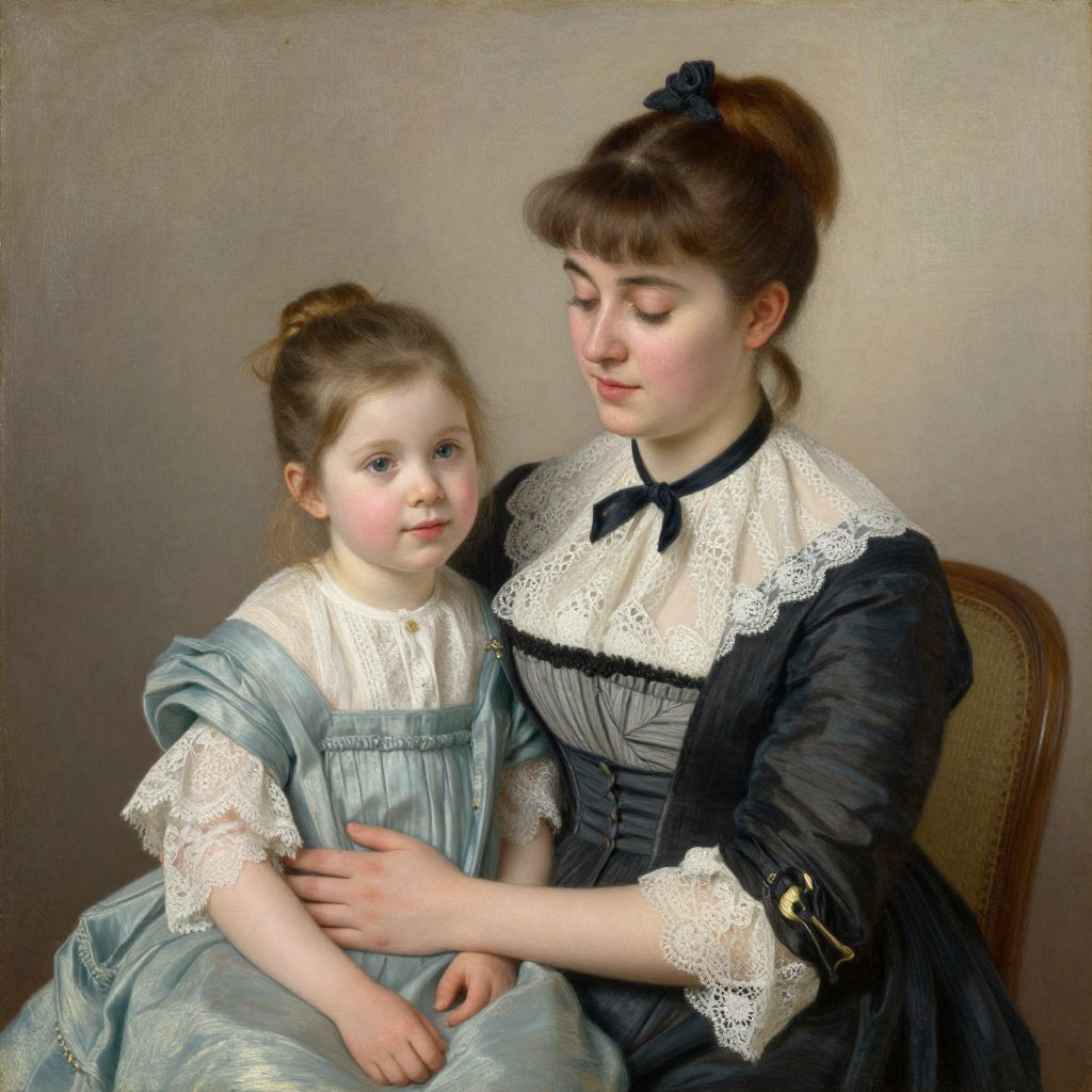 Renoir-Style Tender Mother and Daughter Portrait
