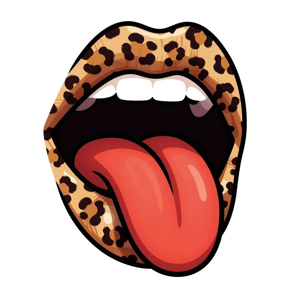 A bold pop art poster of lips with tongue sticking out, lips covered in metallic chainmail scales, bright red tongue with crisp white highlights, thick black outlines, futuristic sci-fi technicolor, set against sleek silver chrome with circuit etchings, crisp vector edges, strong graphic composition, generous negative space, high resolution, print-ready, no text