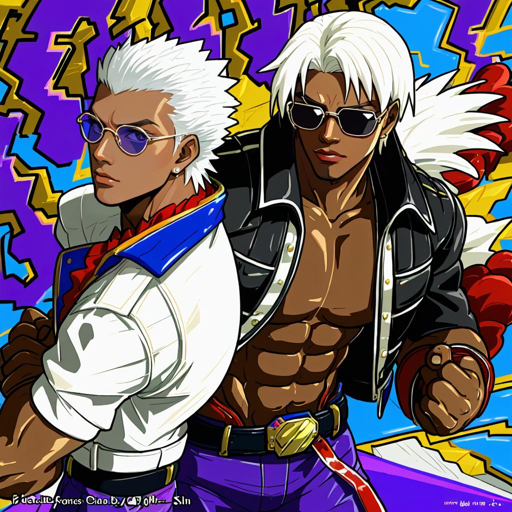 Illustration of K' (kof), the king of fighters in the style of Yu yu