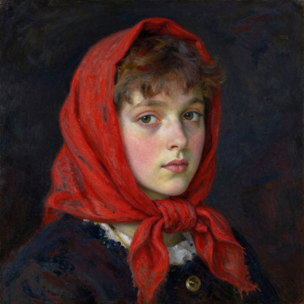 Impressionist Portrait with Red Kerchief