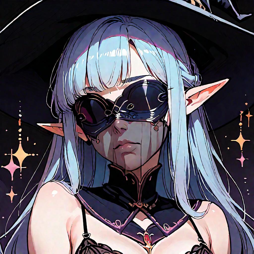Score_9, score_8_up, score_7_up, source_anime, female, witch, (mouth veil:1.1), blindfold, pointy ears, witch hat