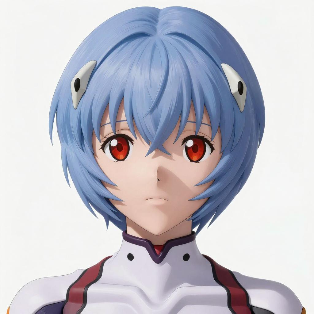 Masterpiece portrait of Rei Ayanami \(evangelion\), hades-8500, high resolution illustration, red eyes, feminine, no pupils, blue hair, short hair, simple background, fantasy, fantasy mage, cartoon, comic, 1girl, portrait, closed mouth, looking at viewer, (realistic), solo, soft lighting, shading, (dark outlines:1.2)