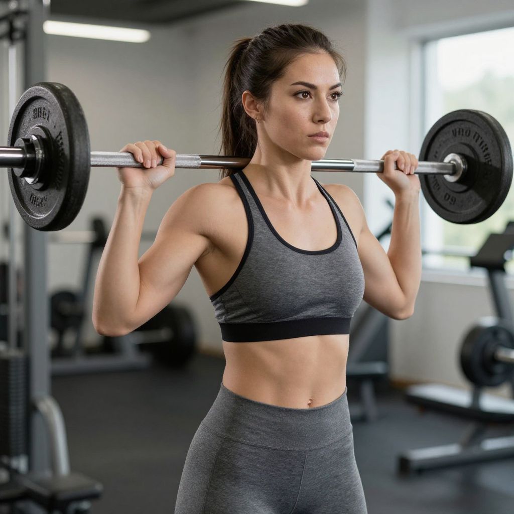 Woman Exercising with Barbells