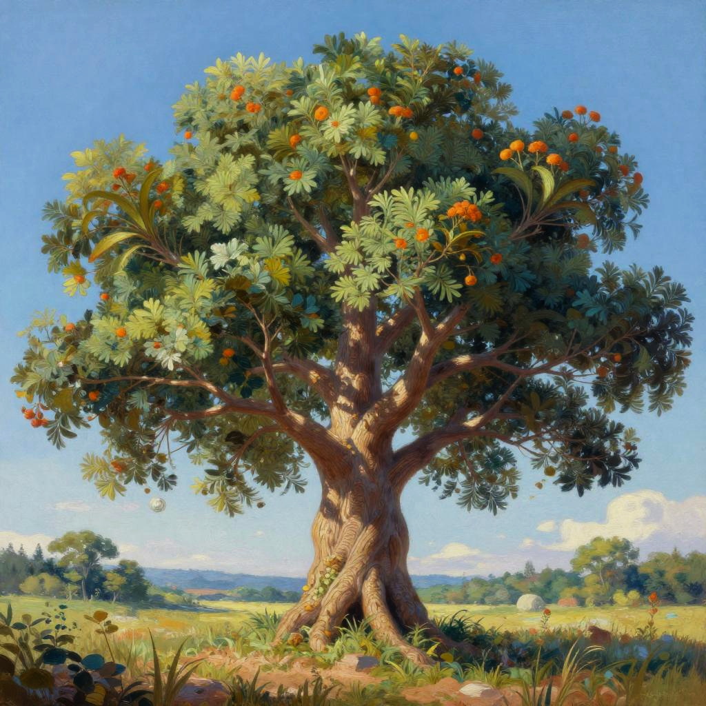 The tree of life, ultra HD, realistic, vivid colors, highly detailed, UHD drawing, digital oil painting, perfect composition, beautiful intricate details, octane render, trending on ArtStation, 8k artistic photography, photorealistic concept art, soft natural volumetric cinematic perfect light