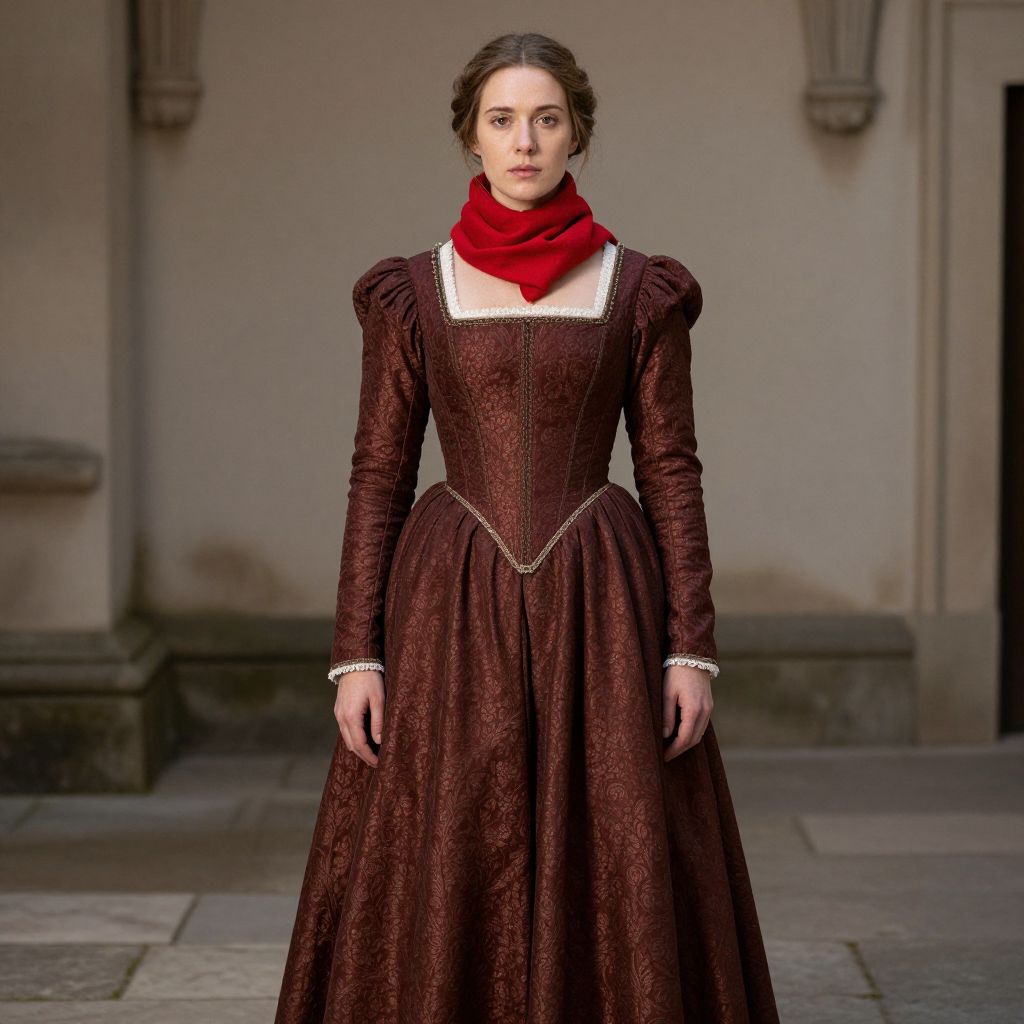 Renaissance Costume Female, woman in a medieval dress with a red scarf