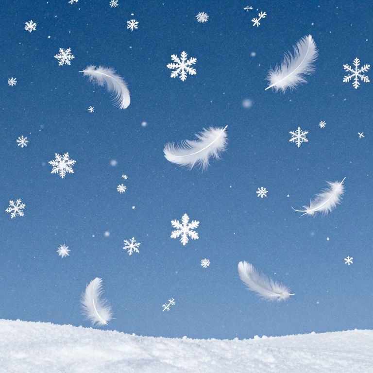 Snowflakes fall upward, tracing the breath of sky-angels dancing in storms filled with feathers and lost inventions.