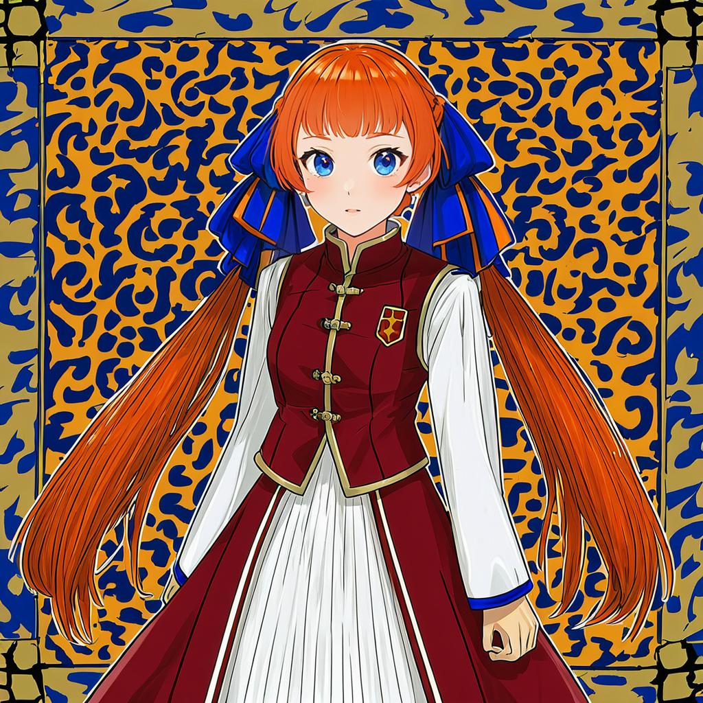 Annette fantine dominic, fire emblem, 1girl, blue eyes, orange hair, long hair, twintails, medium breasts, garreg mach monastery uniform, long sleeves, by artist lazyprocrastinator, anime