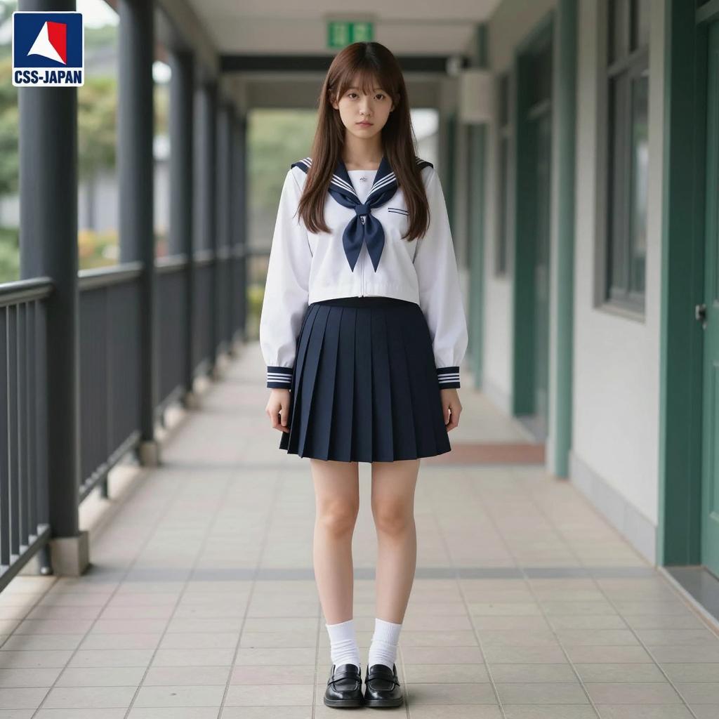 Elegant Asian Schoolgirl in Bright Hallway
