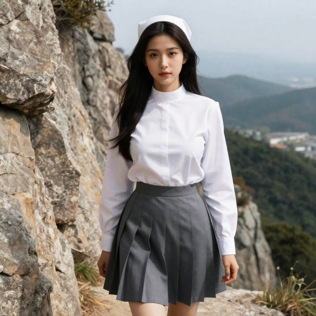 Upskirt nurse, (masterpiece:1.2), (realistic:1.3), (photorealistic:1.3), 8k uhd, dslr, soft lighting, high quality best quality, beautiful lighting