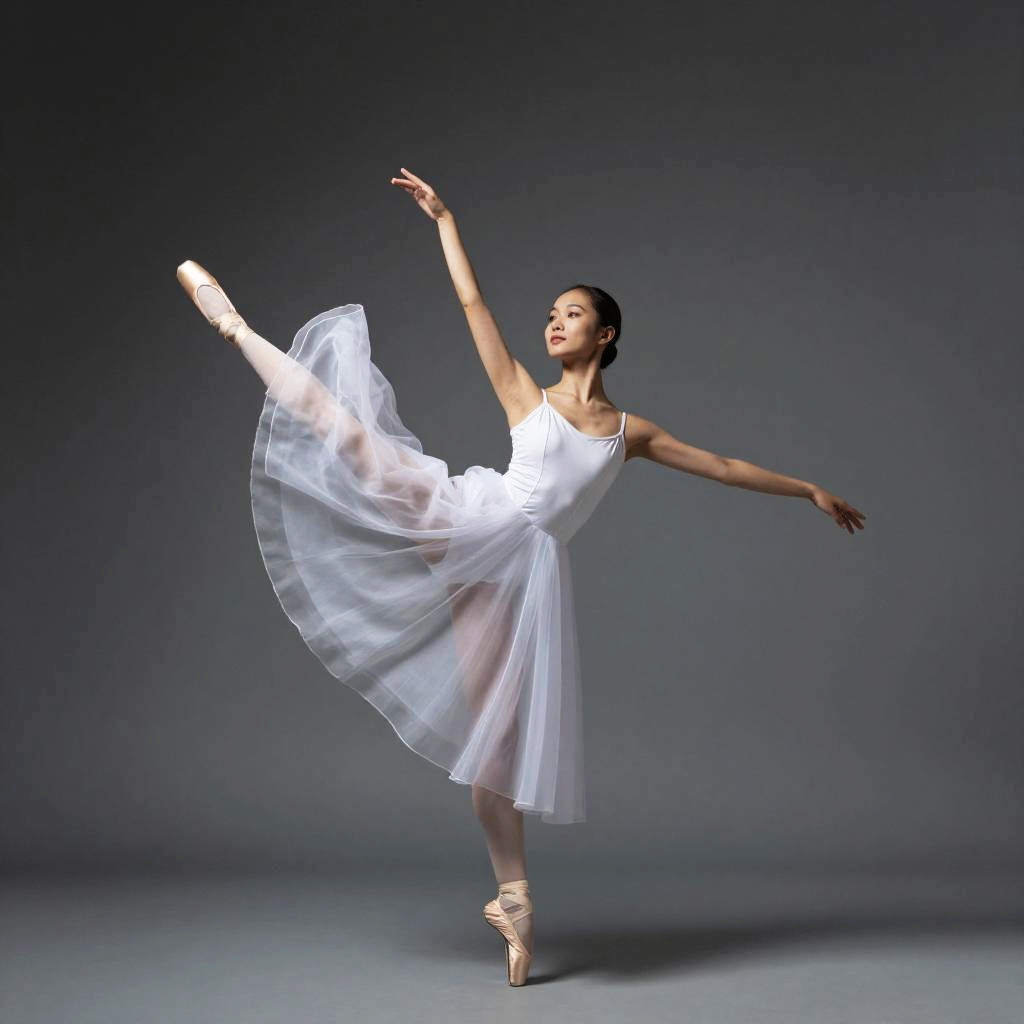 Dark Ballerina, woman in a black dress is posing on a wooden floor