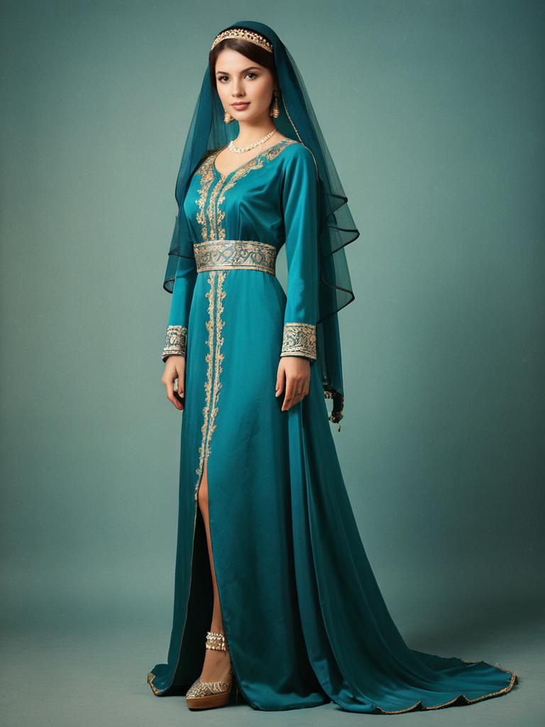 Woman in Arabian Dress, full-body elegant gown photo with veil --sref 1387