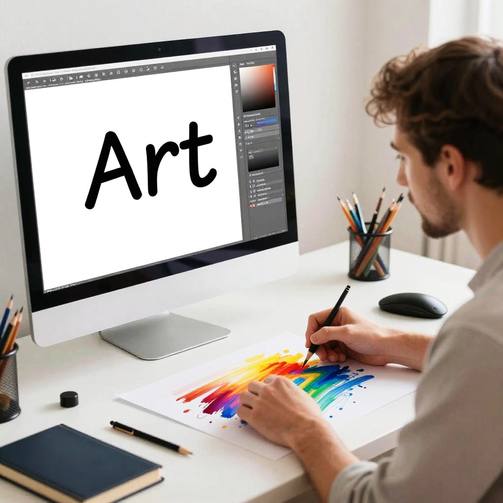 Text to art generator AI free demonstrating step-by-step digital creation process, from simple text input to complex colorful artwork, vibrant digital brush strokes in motion, modern creative workspace, blending human creativity and AI technology seamlessly